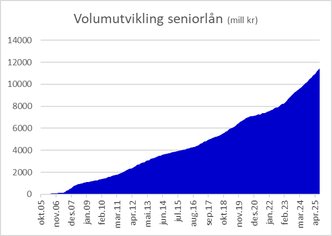 Siden lanseringen i 2005 har Seniorlån hatt kontinuerlig vekst og totale utlån etter 20 år i det norske markedet nærmer seg 12 milliarder kroner.